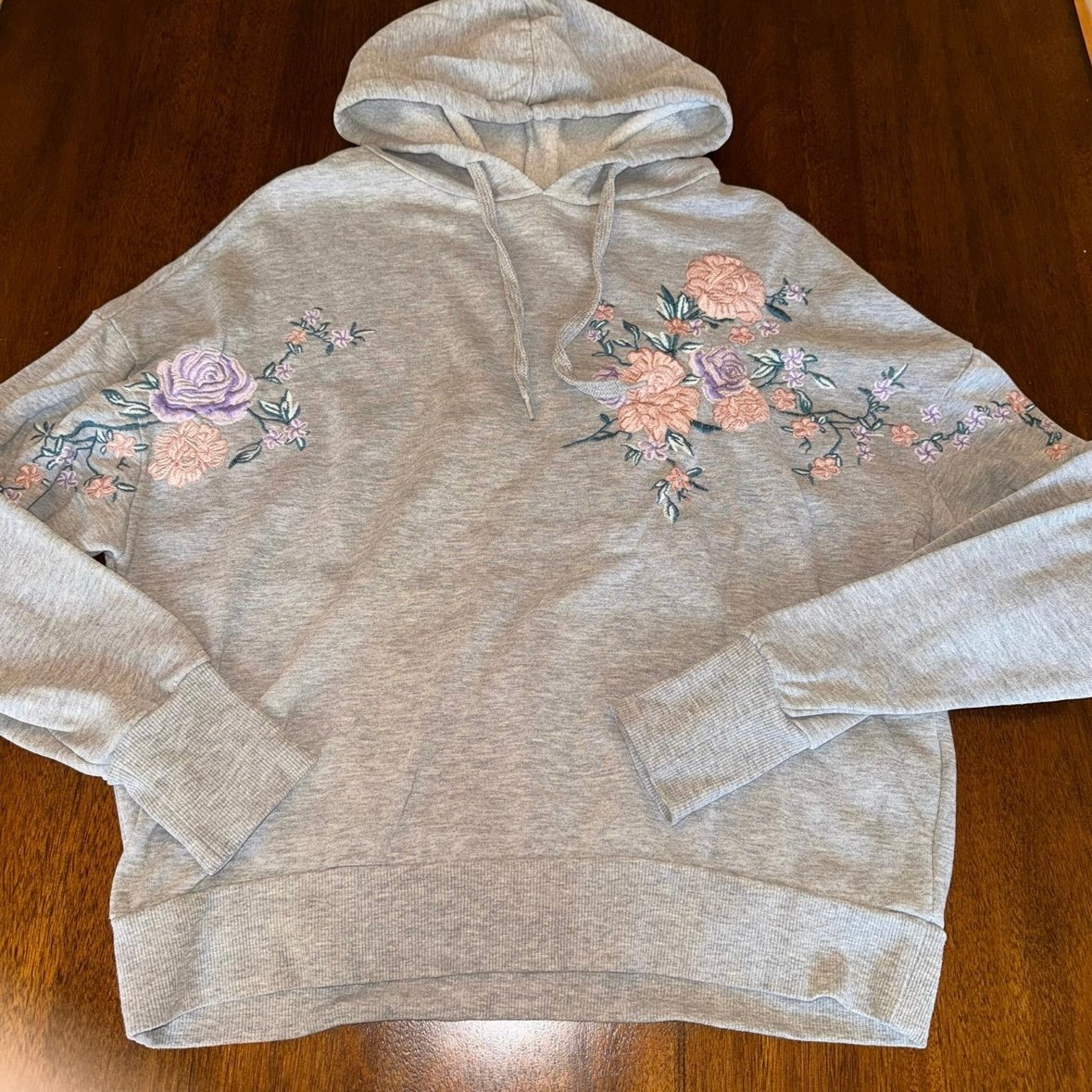 3. H&M Gray Hooded Embroidered Floral Sweatshirt Size Medium
