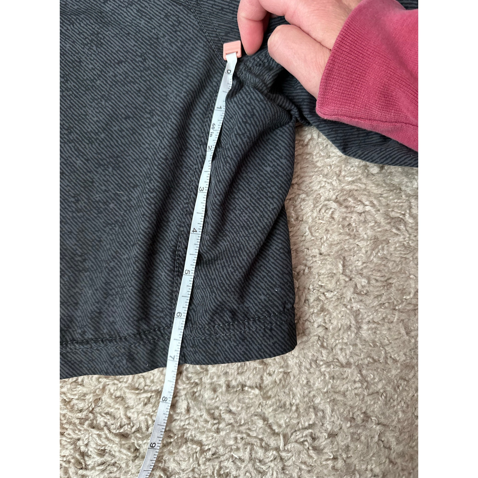 7" Inseam, 17.5" lay flat waist, 17" from waist to bottom of shorts